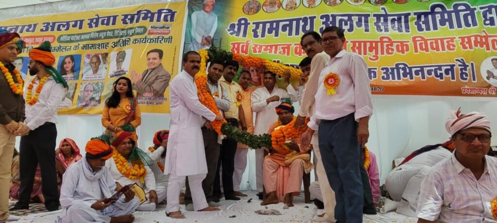 मुख्य अतिथि हर्षदीप सिंह: “श्री रामनाथ अलग सेवा समिति द्वारा नीमराना में सामूहिक सर्वजातीय विवाह सम्मेलन का आयोजन बहुत बड़ा संदेश है। समिति ने 11 जोड़ों का विवाह कराकर सामाजिक सरोकार का शानदार कार्य किया है। ऐसे कार्यों में मैं सदैव सेवा में हाजिर रहूंगा।”
