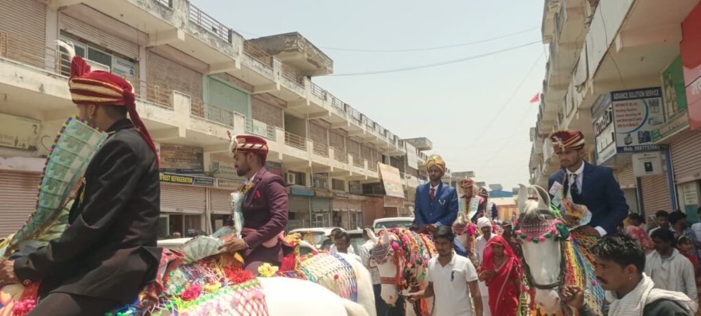 सम्मेलन से पूर्व समस्त दूल्हों को श्रीराम प्लाजा में स्वागत के लिए रोका गया। वहां से मुंडावर विधायक ललित यादव, बाबा गरीब नाथ आश्रम नीमराना के महंत श्री श्री 108 इकसार नाथ महाराज, नगर कांग्रेस अध्यक्ष एडवोकेट वेद प्रकाश सैनी, पूर्व सरपंच सतीश मुद्गल, समाजसेवी कर्मपाल सिंह चौहान, राष्ट्रीय बहुजन सामाजिक परिसंघ के प्रदेश महासचिव महावीर प्रसाद चर्खिया व नगर कांग्रेस उपाध्यक्ष संजय यादव ने निकासी को हरी झंडी दिखाकर रवाना किया। घोड़ी पर सवार दूल्हे बैंड-बाजे, ढोल-डीजे के साथ पारले स्कूल, कृष्णा टावर, पंचायत समिति सहित मुख्य मार्गों से होते हुए आयोजन स्थल पहुंचे। जगह-जगह लोगों ने पुष्पवर्षा कर निकासी का स्वागत किया। विधायक ललित यादव ने कहा कि सामूहिक विवाह की यह पहल दहेज प्रथा के खिलाफ बड़ा कदम है।