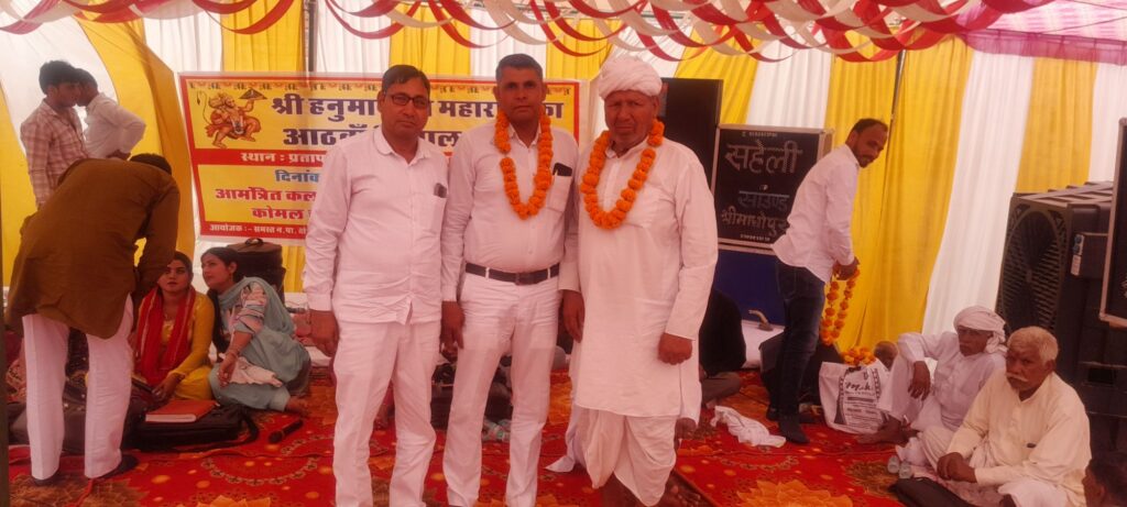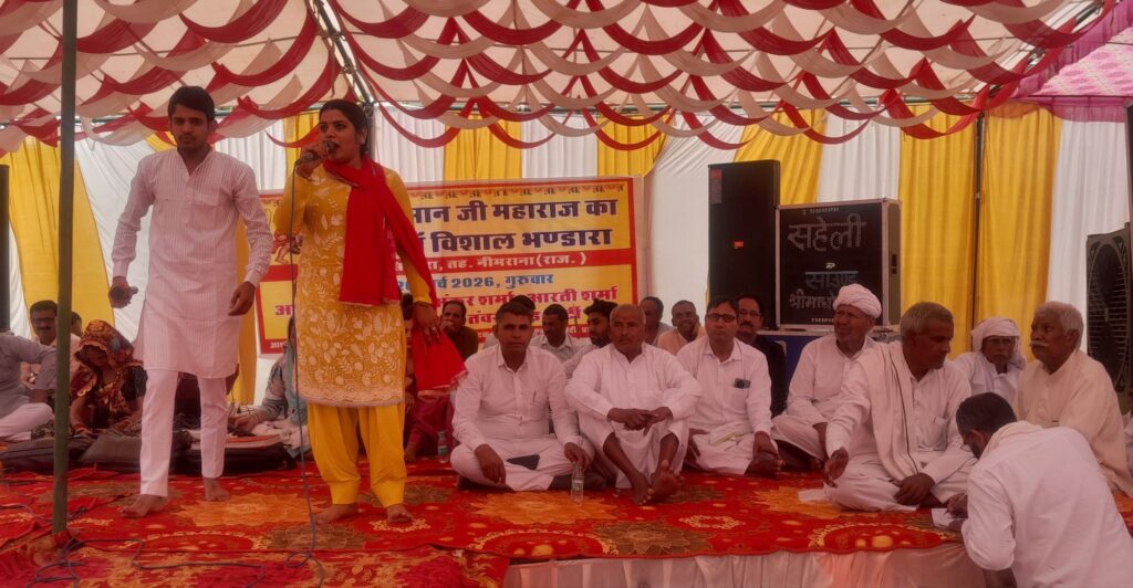 नीमराणा (रमेशचंद), 24 मार्च। नीमराणा नगर पालिका क्षेत्र के प्रताप सिंह पुरा में हनुमान जी महाराज का आठवां विशाल भंडारा संपन्न हुआ, जिसमें काफी लोगों ने भोजन प्रसादी ग्रहण की। इस अवसर पर अंकुर शर्मा, आरती शर्मा, कोमल चौधरी, मन्नू तंवर एंड पार्टी द्वारा कंपटीशन रागनी का प्रोग्राम आयोजित किया गया।