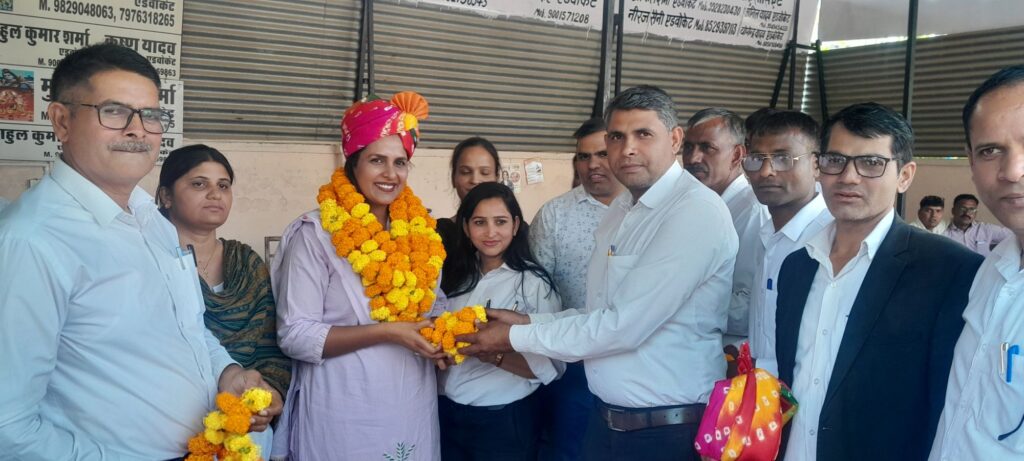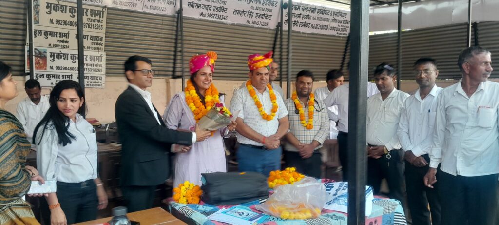 इस दौरान अभिभाषक संघ, नीमराना के अध्यक्ष उदय सिंह यादव ने समस्त अधिवक्ताओं के साथ डॉ. दीपिका यादव को पुष्पगुच्छ भेंट कर माला व साफा पहनाकर स्वागत किया। साथ में आई डॉक्टरों की टीम का भी भव्य स्वागत किया गया।
